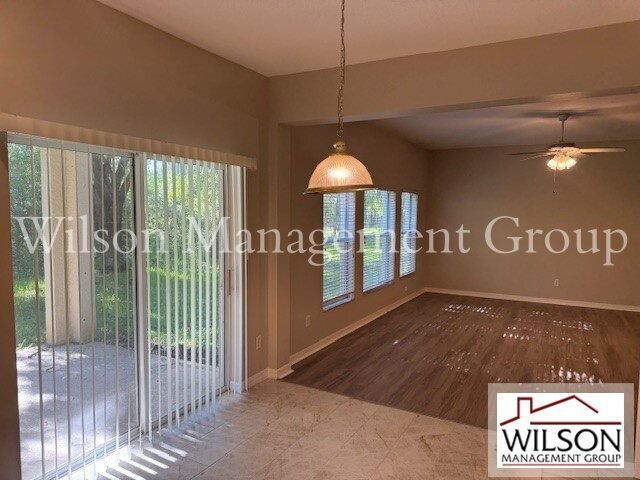 This 5-bedrooms, 3-bathrooms, 3-car garage home is in the gated community of Avalon Lakes. It's conveniently located near shopping and makes excellent use of space, boasting a formal living and dining area, a spacious family room adjacent to the eat-in kitchen, and an upstairs master suite along with a large loft/bonus room. There's also a separate laundry room and a covered porch situated on a conservation lot. With 2,673 sq ft of air-conditioned living space and a total of 3,593 sq ft, the home has carpeted bedrooms, tiled wet areas, stunning wood-look LVT flooring in all living spaces, and ceiling fans throughout. The community offers a center with a pool, sports courts, and a playground.